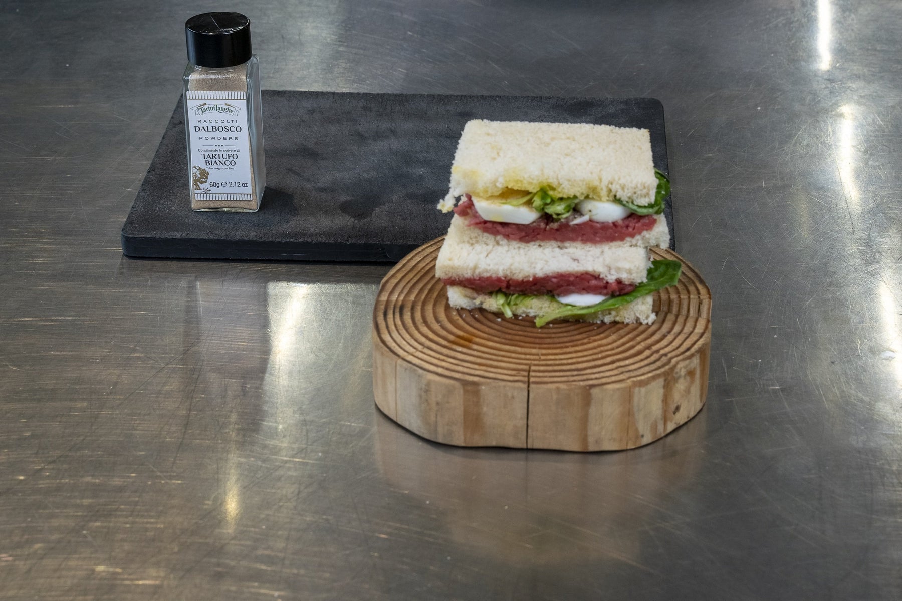 Tramezzino with Tartare, Dalbosco (white truffle powder) and Egg - Chef Marcello Trentini